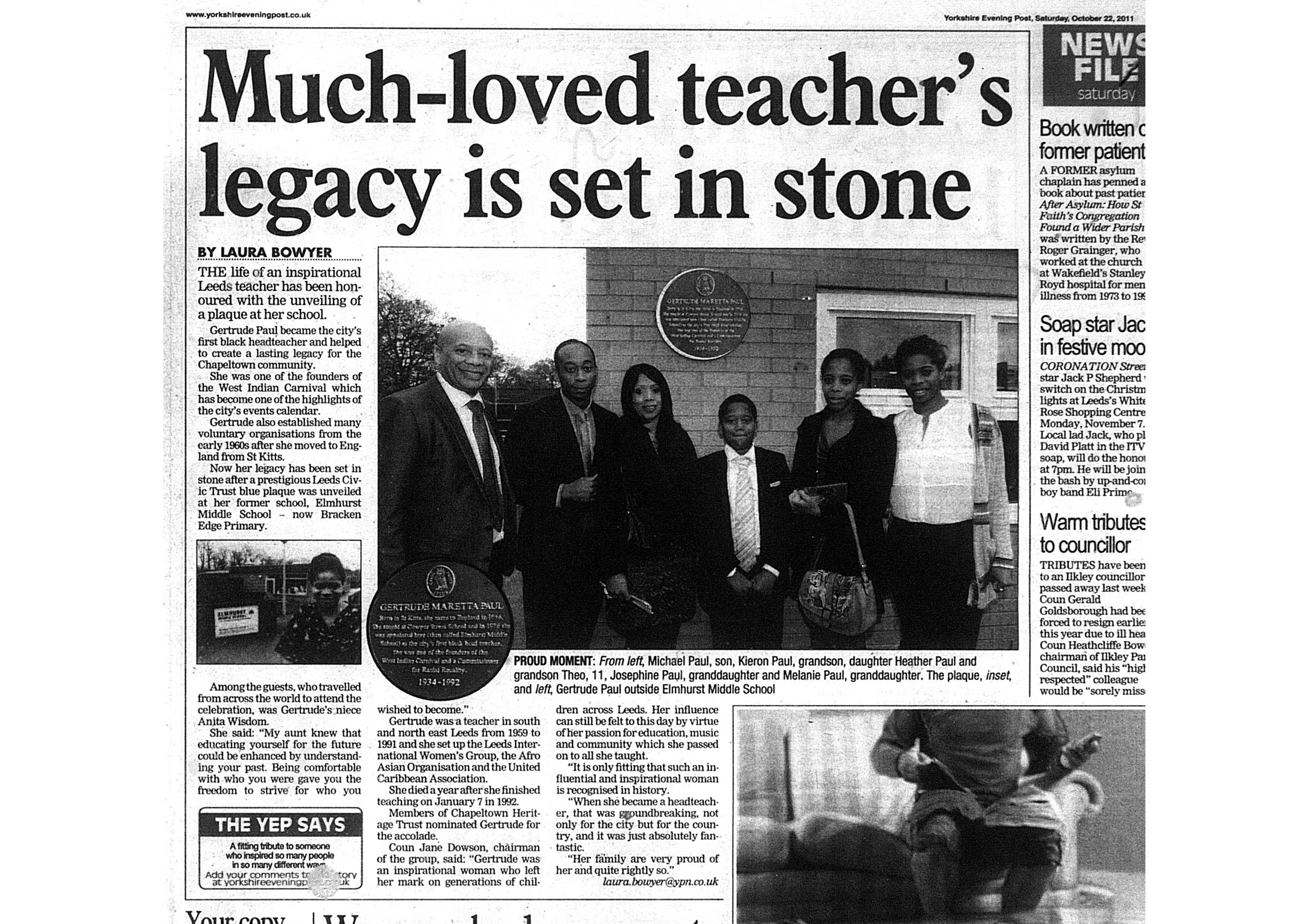 In the second of three special articles to mark our Unfinished Business exhibition focusing on Women in our collections, we reproduce a piece about Gertrude Paul, educator and activist. The document below was produced and written by Dawn Murray for Leeds City Council, based on research by the Leeds Civic Trust.