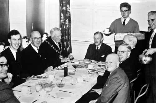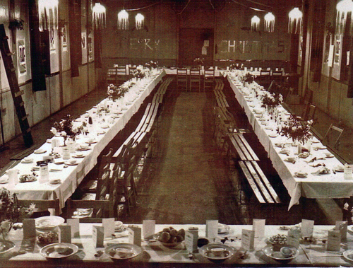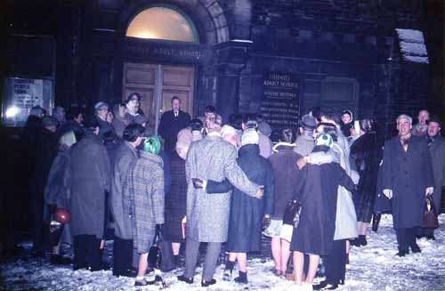 c1909. Postcard with a postdate of 31st December 1909 showing Woodview Terrace in Horsforth. Several of the residents are standing outside their doors for the photo and a group of children are sitting on the wall of one of the gardens. (c) Artemis, www.leodis.net31st December 1940. Looking north across Conway Street at Skeltons advertising hoardings. This adjoins a row of brick through-terraces sloping down to Harehills Road. Advertisements for Guiness, Leeds United matches and war effort are visible. The structure itself is wooden with ornate corner mouldings. The streets are cobbled and over head tram wires can be seen in Harehills Road. (c) Leeds Libraries, www.leodis.net31st December 1940. Looking south across a cement pavement and the cobbled Back Conway Street, towards the Sheldons advertising hoardings. There are posters for John West, Oxo, war propaganda and a Labour Party meeting among others. The structure itself is made of timber with ornate cornices and mouldings. The back of a row of brick terraces is evident to the left, whilst to the right of the picture a pedestrian crossing on Harehills Road can be seen. The arched facade and bell tower of Conway Street Muncipal School looms in the background. (c) Leeds Libraries, www.leodis.net3rd January 1946. Image shows the dining hall at R.A.F. Boston Spa laid out ready for the New Year Party, held on 3rd January 1946. The preparations include floral arrangements, bowls of fruit and menu cards at intervals along the tables. The menu cards had the winged emblem of the R.A.F. on the front and the date. At each place setting the starter is set out, a dish containing half a grapefruit. The menu states that this was followed by Brown Windsor Soup, Steamed Cod and Parsley Sauce, Roast Turkey, Roast Pork, Stuffing, Bread Sauce, Green Vegetables, Roast and Creamed Potatoes, Christmas Pudding and Sauce. At the end of the menu it reads ‘The Commanding Officer and Officers of R.A.F. Boston Spa wish you all a Very Happy New Year’. (c) Leeds Libraries, www.leodis.net31st December 1949. View looking north at the North side of Merrion Street, showing number 66, Mardue And Simpson, French Polishers (below) and S. Libson, Tailor (above). Next door is H. Outhwaite, Newsagent. Posters advertising Bovril and Cadbury’s Bourn-vita can be seen. (c) Leeds Libraries, www.leodis.net31st December 1948. Cotopa Mill, Back Lane, Guiseley had manufactured chemicals, including Potassium Chloride and other chemicals used to make matches. On New Years Eve 1948 a massive fire destroyed the mill. This was not the first catastrophe to have happened here. During the war, four young women handling explosives had been blown up, this was in 1941. (c) Leeds Libraries, www.leodis.net31st December 1958 The sign above the door states that the proprietor Fred Russell is licensed to sell beer, wine and spirits for consumption on or off the premises. A large sign above the pub states that this is a Samuel Smiths pub serving Taddy Ales pub. On the left of the pub is a yard while on the right is Admiral Street. The white building at number 6 is the Davy Machine Co fish frying engineers with the Maple Clothing Co blouse factory behind. (c) West Yorkshire Archive Service, www.leodis.net31st December 1962. Members of the Morley Friends’ Adult School singing outside their premises just before 12 o’clock midnight and the change over to the New Year. It was a traditional arrangement to have a social (party games, competitions, dancing and sometimes sketches or plays) from 8 p.m. to 12 p.m. on New Year’s Eve and vacate the premises at about 11.50 to sing out the old year and sing in the new in front of the building. 1962-3 was a particularly hard winter and this snow remained on the ground for quite some time. Photograph from the David Atkinson Archive. (c) David Atkinson, www.leodis.net1st January 1963. This photograph was taken at the traditional New Year’s breakfast held by the Men’s Class at Morley Friends’ Adult School. The Mayor shown here is Cyril Noble Akeroyd who occupied the position from May 1962 to May 1963. Photograph from the David Atkinson Archive. (c) David Atkinson Archive, www.leodis.net16th November 1999. View of the entrance to Planet Earth night club which is in the basement of the Queens Hotel. There is a banner displayed advertising New years Eve tickets’. (c) Leeds Libraries, www.leodis.net