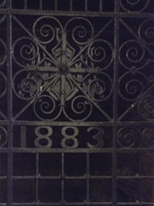 In the void space to the left of the kitchen hides one of our buildings most intriguing features, an iron portcullis used up until the late 1990s. It would be raised from the basement level using a hand crank, up through the main Calverley Street entrance steps to secure the building during closed hours. The date on the portcullis is 1883, the year before the building opened in 1884, was this a miscommunication during ordering or did the building open a year later than originally intended? Either way the portcullis would have been in its underground resting place during the opening ceremony so maybe no one noticed the error on the day. Previous library staff remember the portcullis in use, “We would stand in the Calverley Street entrance and shout ‘Ready’, down though the floor gap to the porters below, they would start to crank the mechanism and the gate would rise. Sure enough every now and then we would have some stragglers in the library who didn’t want to take the long way out and would take a running jump to clear the gate before it got too high” – Moira, former Central Art Librarian.