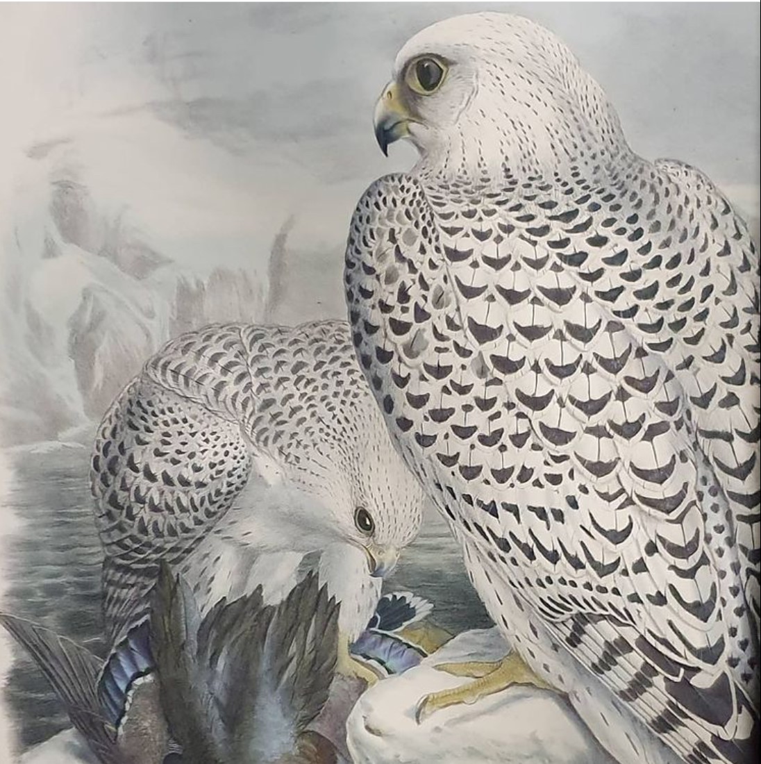 Our next rare book arrived during The Golden Age of Illustration and is among the most famous and important bird books of the C19th. John Gould is described as the greatest figure in bird illustration after Audubon and we are lucky to have the magnificent Birds of Great Britain (1873) in our collections.  This enormous 5 volume set was his most popular work and contains 367 images, and as Gould explains in the introduction ‘every sky with its varied tints and every feather of each bird were coloured by hand’.