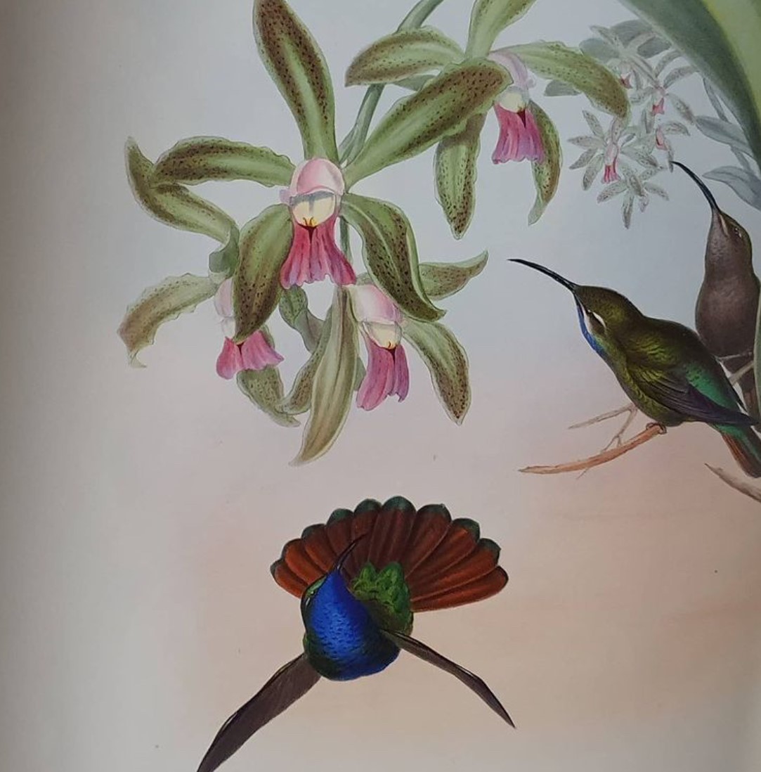 Birds of Great Britain might have been his most popular book but his 6 volume set of hummingbirds, which we also have, is particularly beautiful. Gold leaf was used under the colour to produce iridescent feathers.  Photos do not do these books justice.