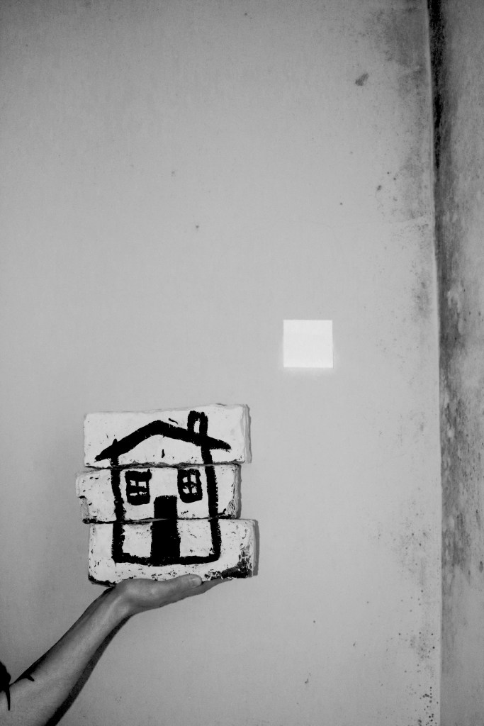 Originally, I was drawn towards a much more political approach for this submission after reading the article titled ‘Bigger profits, Higher rents’. Focusing on research into current issues surrounding landlordism, I pursued a much more illustrative direction with my practise. Working on different mediums such as the bricks and slate, I was demonstrating my clear political views on the subject through quick and impulsive drawings, alike the house here. However, I felt as though my political judgements almost clouded the artwork created, thus leading me to take a step back and reflect upon how my ideas could be demonstrated in a more contemporary way. I discovered that due to the scale limit we had been briefed with, photography and sculpture became fundamental elements in my process of creating. The content of my work represents issues surrounding my own personal experience with landlords and living in a rented property, particularly during a pandemic and as a Fine Artist.