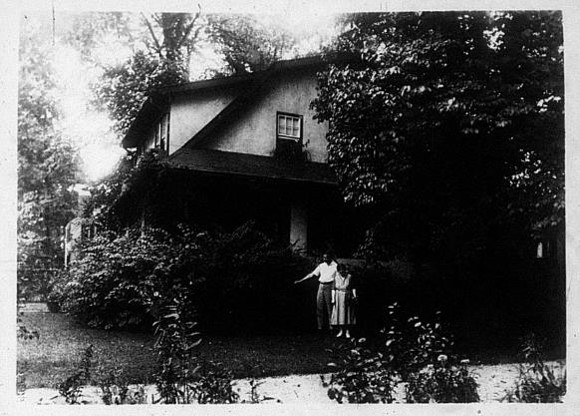 Mary Gawthorpe with her husband, John Saunders, outside their home in the USA.