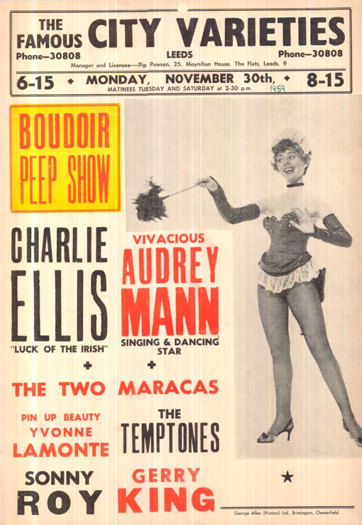 Audrey Mann, born in 1930, performed at Leeds City Varieties on many occasions over the course of the career. We hold seven playbills from the years 1959-1964 with her name on, but she remembers working there on many more occasions. The playbills give very little information, only referring to her as ‘The Vivacious Audrey Mann’ or ‘The Personality Audrey Mann’. So what did her show entail?