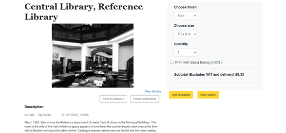Now we’ve gone about as far as we can without signing up for or into a personal Leodis account. If you want to create an album, leave a comment or purchase a photograph you will require an account of your own. At the top right of the screen there will be a sign in/sign up option. If you had an account on the old Leodis site then it’s still here, you just need to sign in and confirm your email. You will be asked to create a username, for data protection and security reason this cannot be the same as your email address, and it is your username that will be visible if you leave a comment on a photograph.