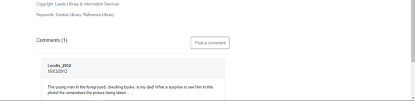Now we get to one of our favourite bits about Leodis, the comments. What takes Leodis from being just a catalogue of photographs and raises it to a social history resource are the 40,000 visitor comments, whether its memories or in the case of the above picture someone’s father, these additions make Leodis a truly fantastic resource.