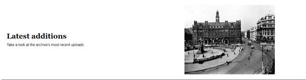 Underneath this you’ll find a white block and our final main section Latest Additions, here you’ll find all the new photographs we’ve recently added to the site, because Leodis is a living archive with new photographs added regularly.