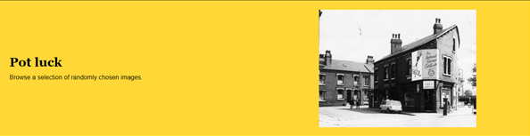 As you scroll down the page you pass through different blocks of colour, the first block is yellow and home to Pot Luck which replaces the old ‘Top 50’. Before this section brought you the top 50 most viewed photographs on the site, however this section didn’t change all that much and was dominated by city centre photographs. Now who knows what you’ll find as it’s completely random, allowing those lesser, or never before viewed photographs their moment in the spotlight. A word of warning though, if you click to view a photograph and then want to go back, your Pot Luck page will reload with a whole new set of photographs, our advice is to right click on the photograph you wish to view, and open it in a new tab instead.