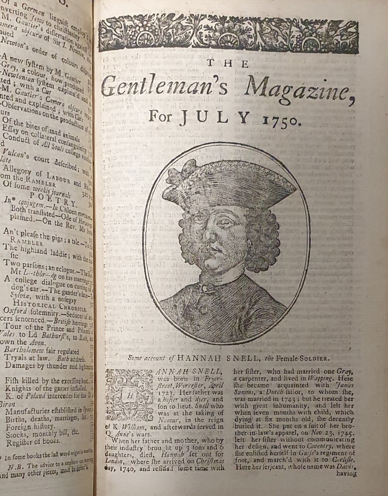 Orlando by Virginia Woolf features in the Rule Breakers category and describes the adventures of a poet who alternates between being a man and woman throughout the centuries. We have lots of real life examples of people who challenged gender boundaries, such as the female pirates featured in this blog post, to the male impersonator Vesta Tilley, star of the Music Hall era. Another interesting example is Hannah Snell, who features in A Gentleman’s Magazine (1750). After being deserted by her husband whilst pregnant she disguised herself as a man and became a soldier. With the British Royal Marines she travelled as far as India. When she returned to England in 1750 and her identity was revealed she became a sensation, performing military drills and ballads in her uniform. She was also granted her military pension and honourably discharged.