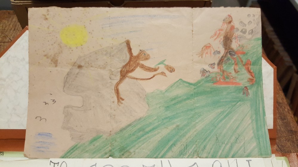 In 1963 almost twenty years after Eddison’s death his late wife, Winifred Grace, and his close friend and literary executor, Sir George Rostrevor Hamilton deposited into the care of the special collections of the Leeds Central Library the vast majority of Eddison’s manuscript works. This included his sagas and all his fantasy works apart from his unfinished work, The Mezentian Gate. Also included in the collection are a great many of his manuscript notes, correspondence, family and personal items such as the childhood drawing above.