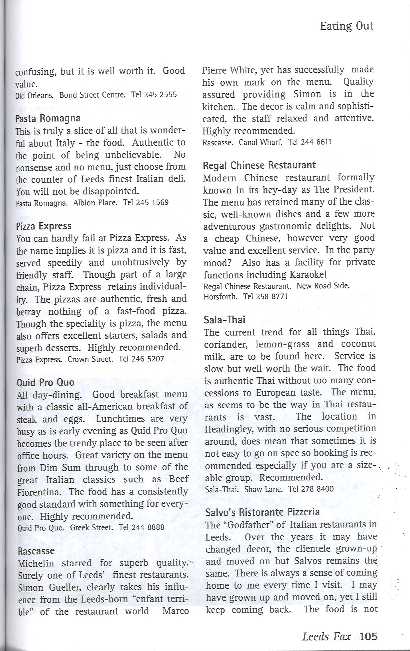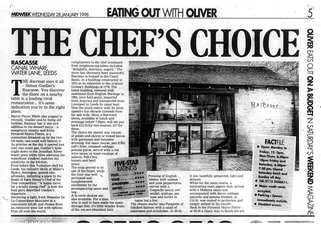 However, the 1998 Leeds Fax guide to life in the city does describe Rascasse as being Michelin-starred for superb quality, as does the Little Book of Leeds for 2000. But whether that is definitive proof – or a warning about the perils of trusting everything written in a printed source – is hard to say.