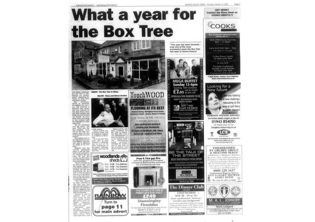 However, this 2005 article in the Wharfe Valley Times describes Guellar as having gained a Michelin-star at three of his restaurants in Yorkshire: Rascasse, Guellar’s and The Box Tree in Ilkley – which he moved to after Guellar’s closed.
