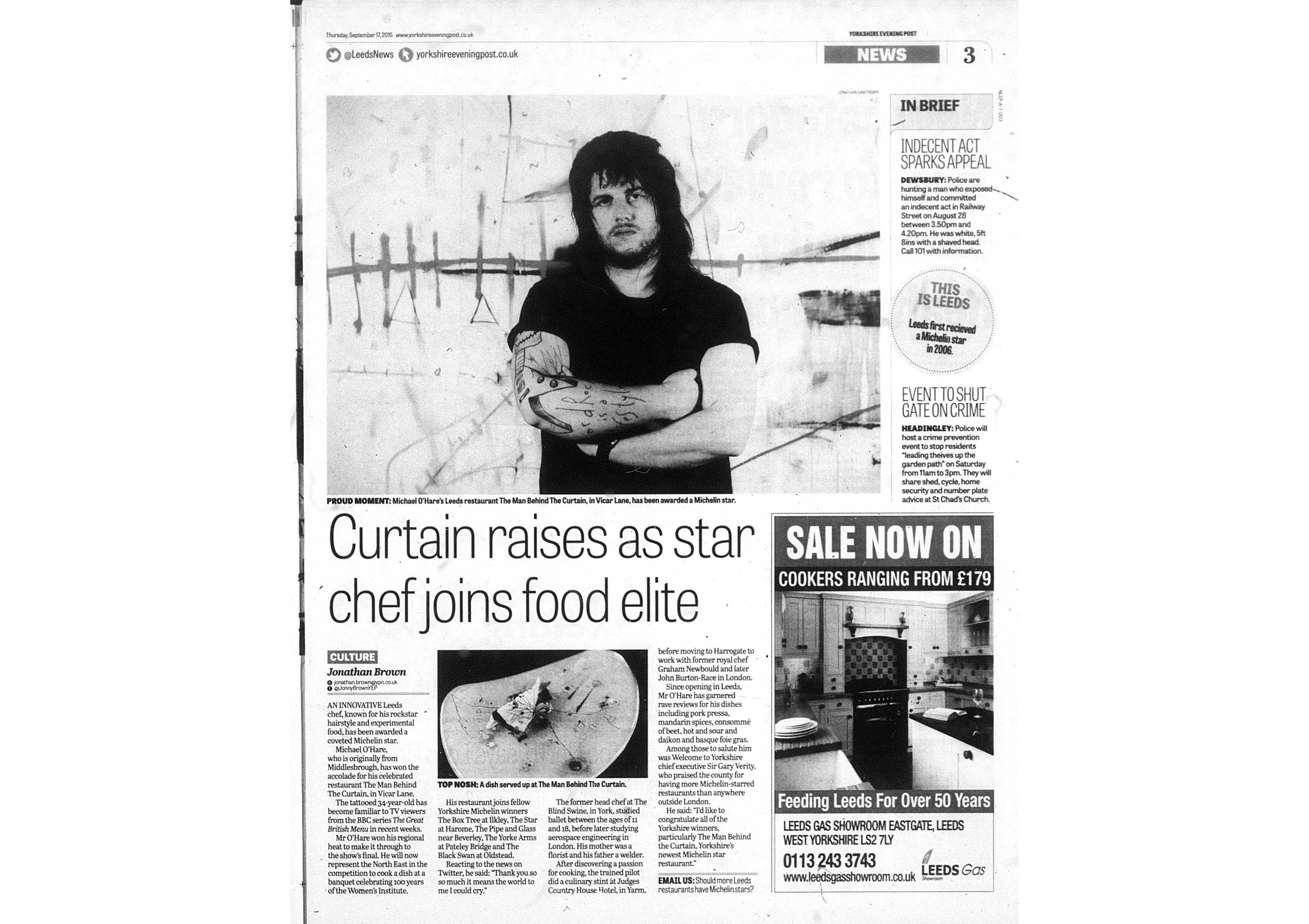 Headed by flamboyant chef Michael O’Hare, this experimental fine dining restaurant opened in 2014 and got its Michelin star in 2015, as we can see in the YEP article that follows.