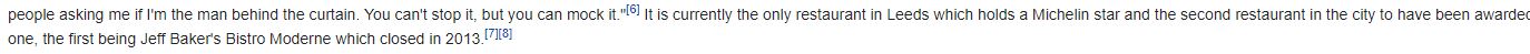 I’ve got that information about the four other Michelin-starred restaurants in Leeds from a fairly comprehensive article published on the Yorkshire Post website in about 2019: https://www.yorkshirepost.co.uk/heritage-and-retro/heritage/yorkshires-michelin-stars-history-1748997.