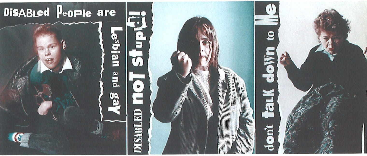 These images were produced by Click, a group of disabled women photographers based at Armley Resource Centre. As part of the Access to Image project they exhibited life-sized images of disabled women, accompanied by bold slogans such as ‘Disabled people are lesbian and gay’ and ‘Don’t talk down to me’.
