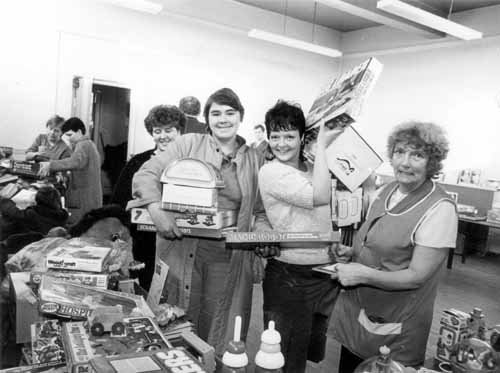 These images show the annual Wykebeck ‘Family allowance Toy Fair’. Local residents in possession of a Family allowance book were able to buy new and quality second-hand toys as Christmas presents for their children thanks to donations by local firms and business fairs. Toys were offered at a much cheaper price than in the shops, sometimes between only 10p and 25p.