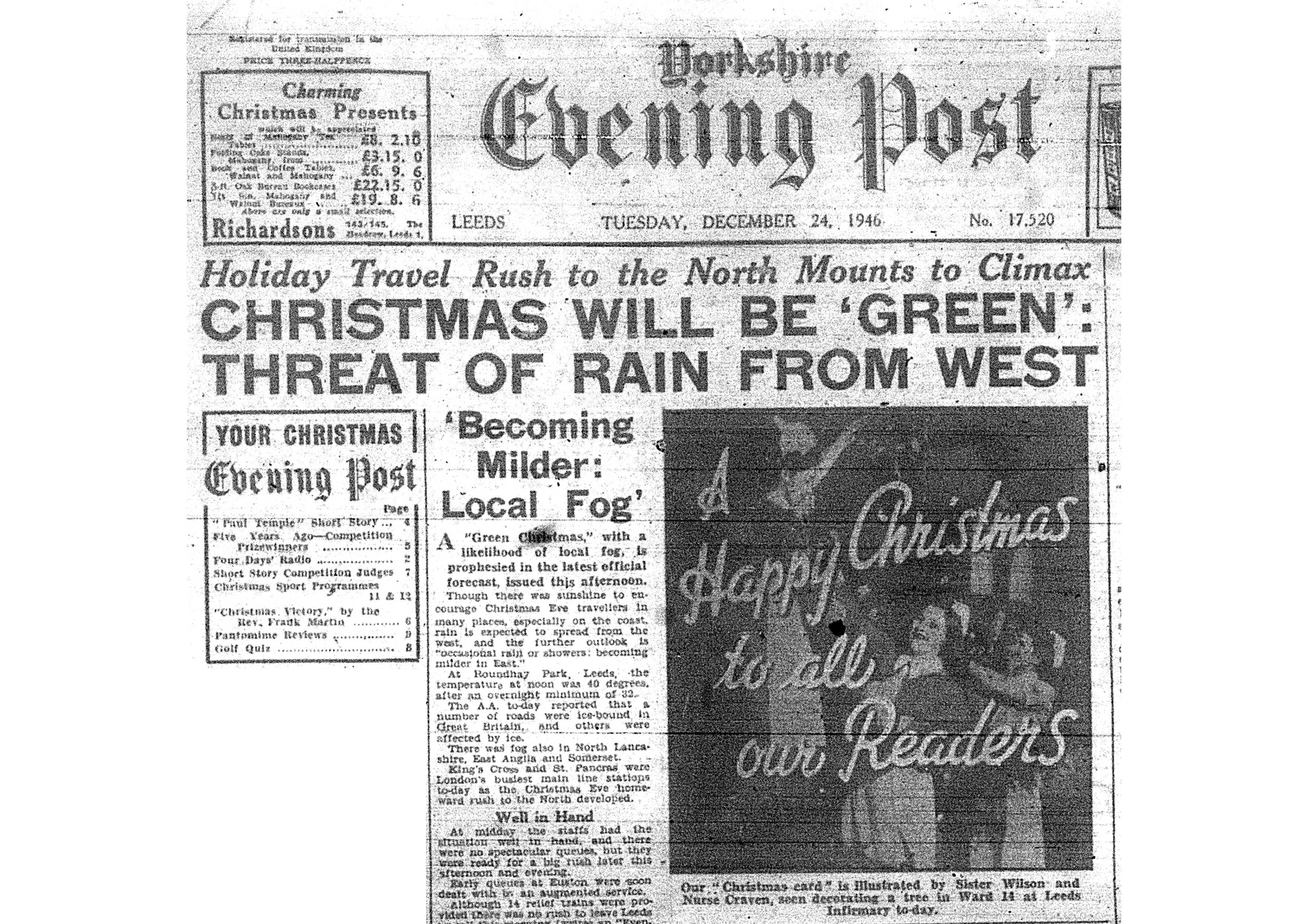 Then, seventy five-years ago (1946), we get a real Christmas feast – with an in-depth weather forecast for the big day and a lovely Merry Christmas message to the paper’s readers.
