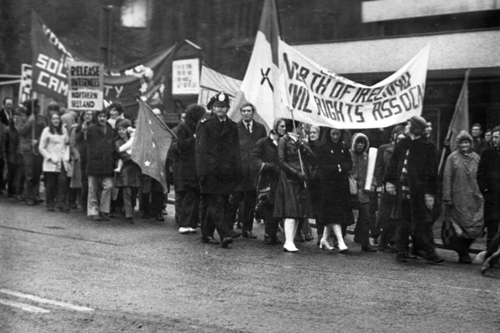 A ‘Yorkshire Irish solidarity Campaign’ banner was visible along with a ‘Civil Rights for N.I. sign’