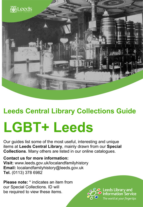 To tie in with LGBT+ History Month, the Local and Family History Library have created a new research guide with some of the most relevant items of stock for anyone researching the history of LGBT+ Leeds. This weeks blog looks at some of the items in more depth.