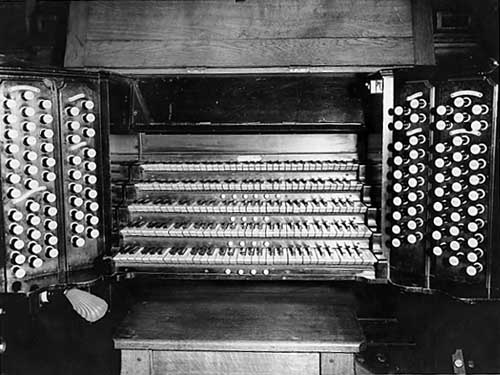 Keyboard of the Town Hall Organ, 1956. Copyright Yorkshire Post Newspapers.