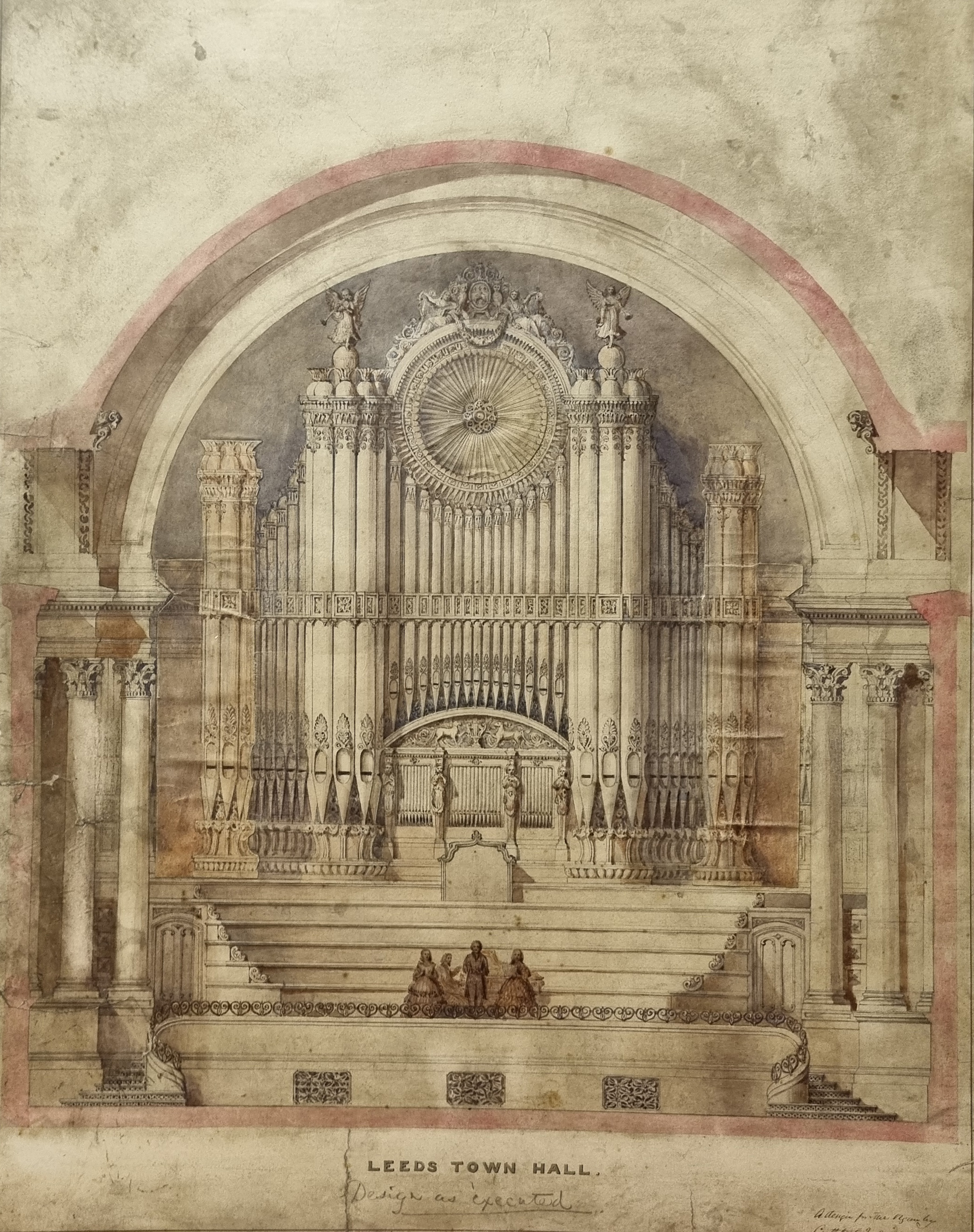 The original design for the organ case by Cuthbert Brodrick, the architect of Leeds Town Hall.