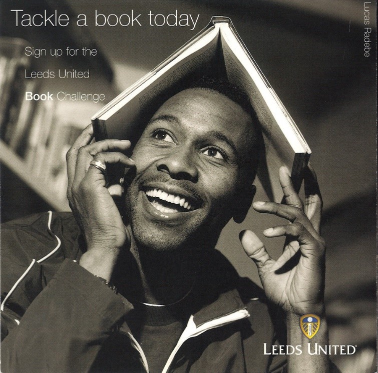 More unusual items include the only copy of the ‘The Accused’, Colin Jeffrey’s 2003 article investigating the match-fixing accusations frequently directed at Don Revie and Billy Bremner and a selection of Official Handbook from the 1970s to the 2000s. Most notable, however, is promotional material from a joint project between Leeds United and Leeds Libraries in the early 2000s, in which players from that era – including Mark Viduka, Olivier Dacourt, Alan Smith, Nigel Martyn and Lucas Radebe – name their favourite books and pose in a range of unusual locations for some delightfully atmospheric black and white photography.