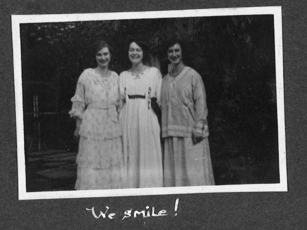 Can we also frame these images in the the social history of holidays and days out? – that the joy we see in these photos is a very direct window into the past, capturing a moment in time, a shift in the ways people, especially families, enjoyed and experienced holidays and days out; that, for instance, all the smiling we see is a reflection of the genuine, very real excitement felt by people, particularly young women, enjoying regular holidays and days out for the first time; a break from everyday life; the chores of domesticity. The “We smile!” image, on the left below, is, in this sense, the defining photo in the album.