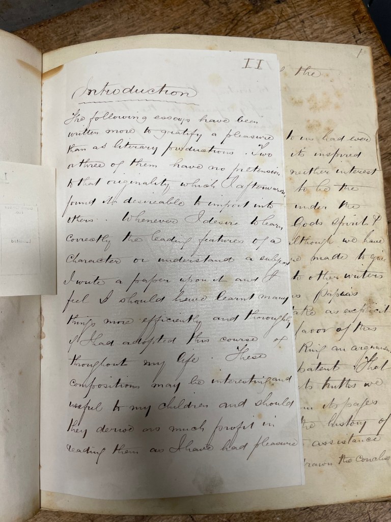 Throughout the essays Camidge adds his own marginal notes and, towards the end of the volume, all we get are notes, often pasted down into the pages of the book itself. Further evidence, perhaps, that the whole volume was a very early draft of an intended publication.