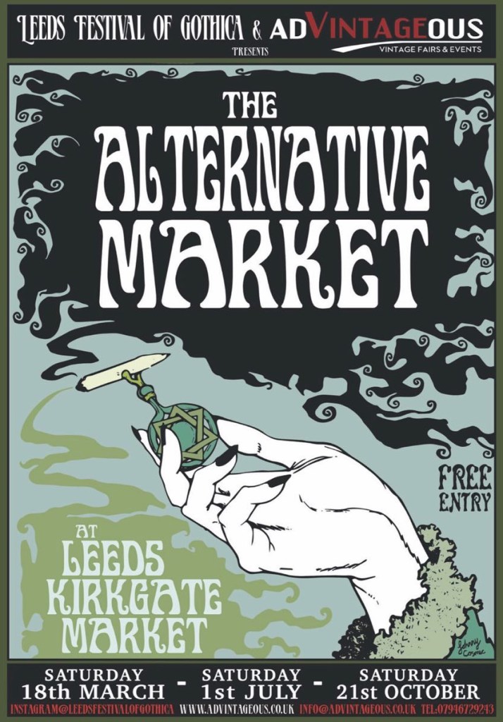 Our next market is on the 18th of March 2023 at Leeds Market. Leeds Libraries will be in residence promoting the alternative image library and will be available to scan images. You can also pop down to the market at any time to have your photo taken with the mural, please however tag us in on Instagram as we love seeing and sharing peoples portraits. If you would like to find out more or get involved please follow @leedsfestivalofgothica on Instagram or email leedsfestivalofgothica@gmail.com