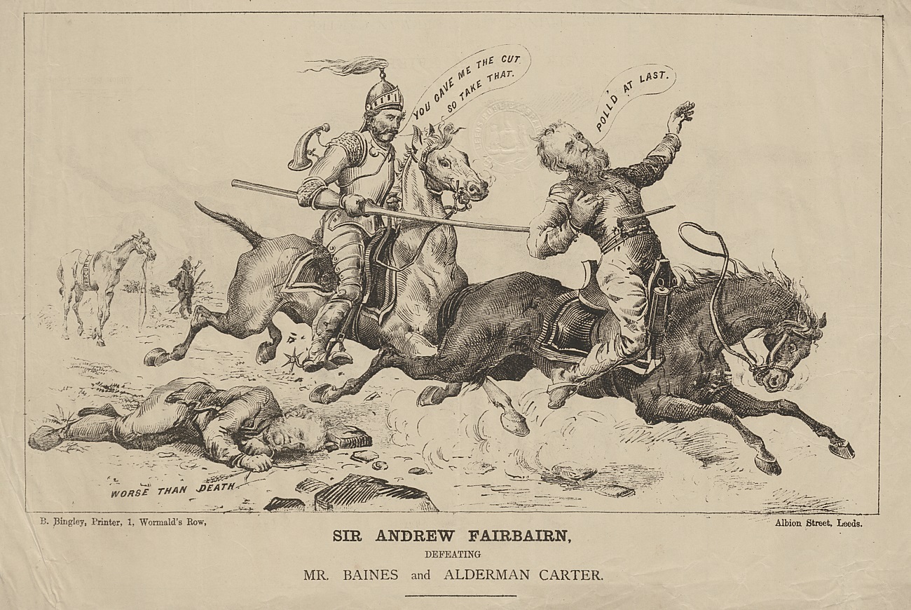 The Representation of the People Act, 1832, also known as the Great Reform Act or First Reform Act, made a number of significant changes to the electoral system which impacted significantly on Leeds and surrounding areas. As noted, the number and location of boroughs had long since outlived its usefulness. Great emerging industrial towns, including Leeds (population: 30,000 in 1801) still had no representation at Westminster, while Aldborough (population 484 as of 1821, of which just 64 electors) and Boroughbridge (population 860 in 1821, of which 74 electors) not only each had two members of parliament, but both were ‘pocket boroughs’, controlled by the Duke of Newcastle. The 1832 Act abolished these and most other pocket boroughs. Within the West Riding, constituencies were completely reorganised, resulting in a total of sixteen members of parliament: two for the new ‘county’ constituency of the West Riding itself; two each for Bradford, Halifax, Knaresborough, Leeds, Pontefract, Ripon and Sheffield; and one each for Huddersfield and Wakefield. The boundary of the new parliamentary constituency of Leeds was contiguous with the parish and therefore included all eleven previously mentioned townships.