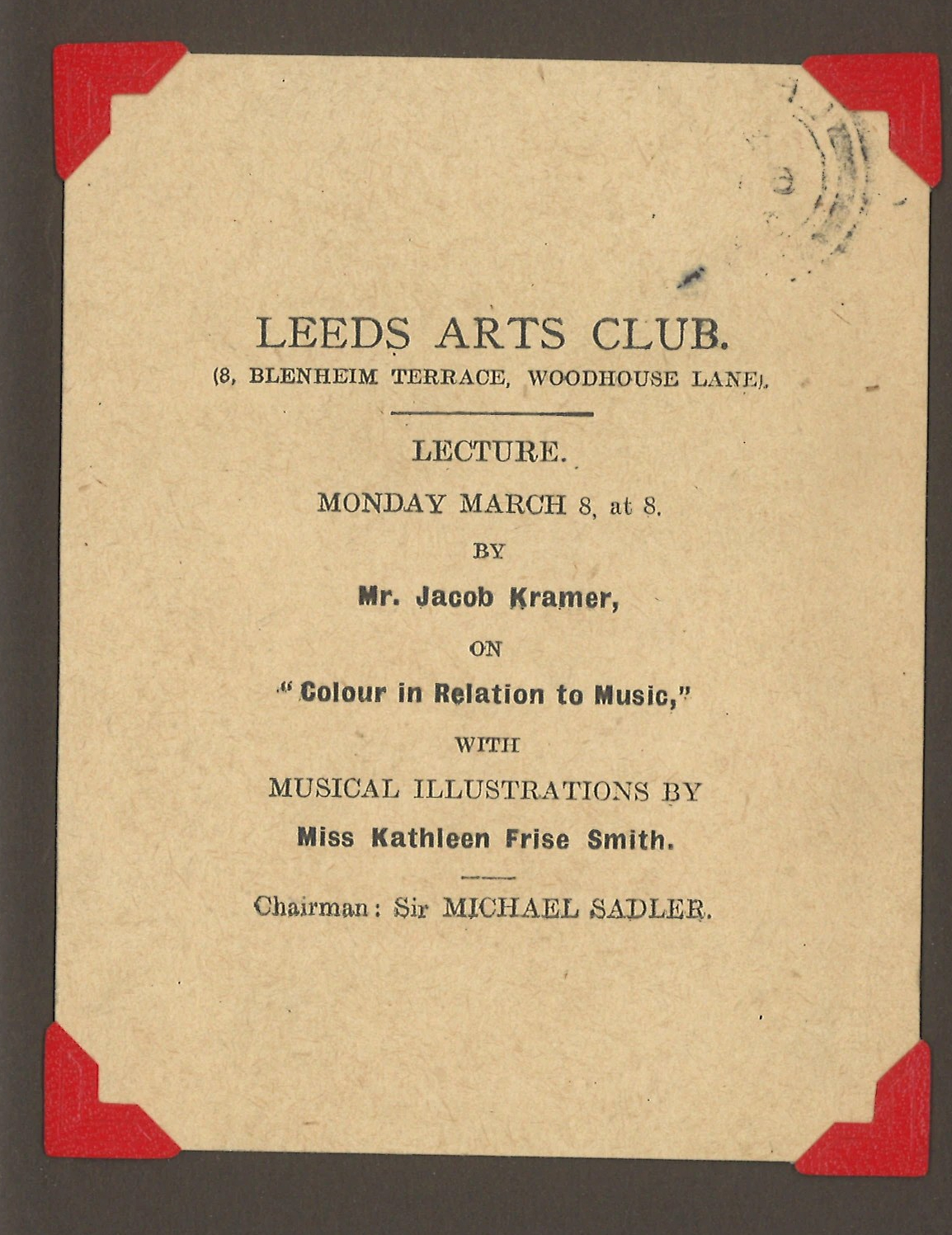 Not long after meeting William Prior Read, Herbert joined the Leeds Arts Club – a centre for modernist thinking, radical thought and experimental art, launched in 1903 and, by the time of Read’s involvement, based at 8 Blenheim Terrace, near the University of Leeds.