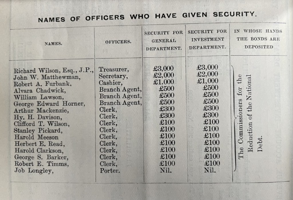 His name can be seen in a 1910 Annual Report from the bank, in the list of Names of Officers who have given security.