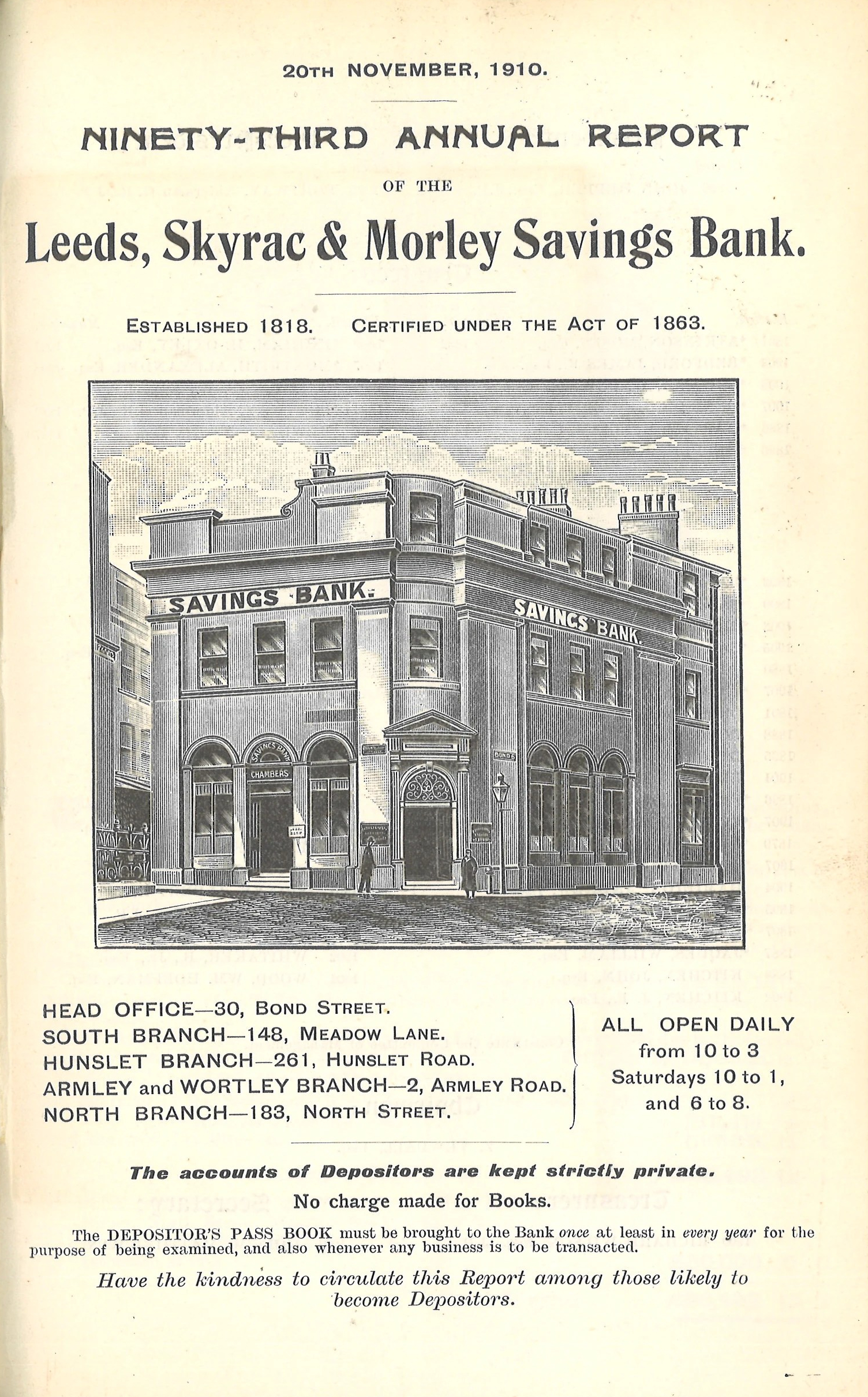 In 1909 Herbert obtained a job as clerk for the Leeds, Skyrac & Morley Trustees Saving Bank, in the Bank headquarters at the corner of Bond Street and Basinghall Street.
