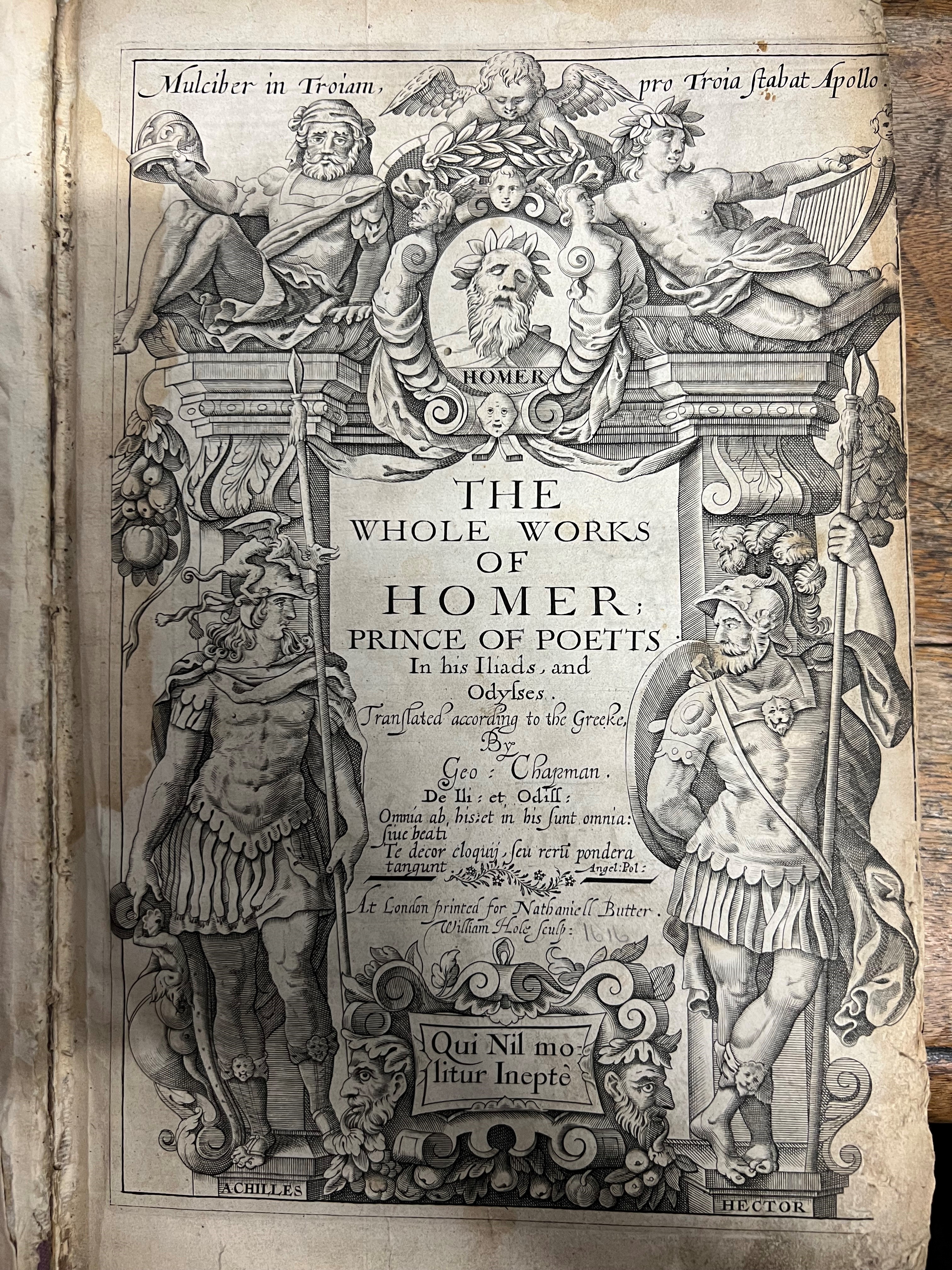 This 1616 edition collects The Iliad and The Odyssey, two epic poems attributed to the ancient Greek poet Homer. These ancient literary masterpieces have had a significant impact on Western literature and storytelling. The Iliad recounts the Siege of Troy and the epic battle between the heroes Achilles and Hector. The Odyssey depicts Odysseus’ ten-year journey home after the Trojan War, including his encounters with sirens, cyclops. This edition has both the original Greek and the translated English included.