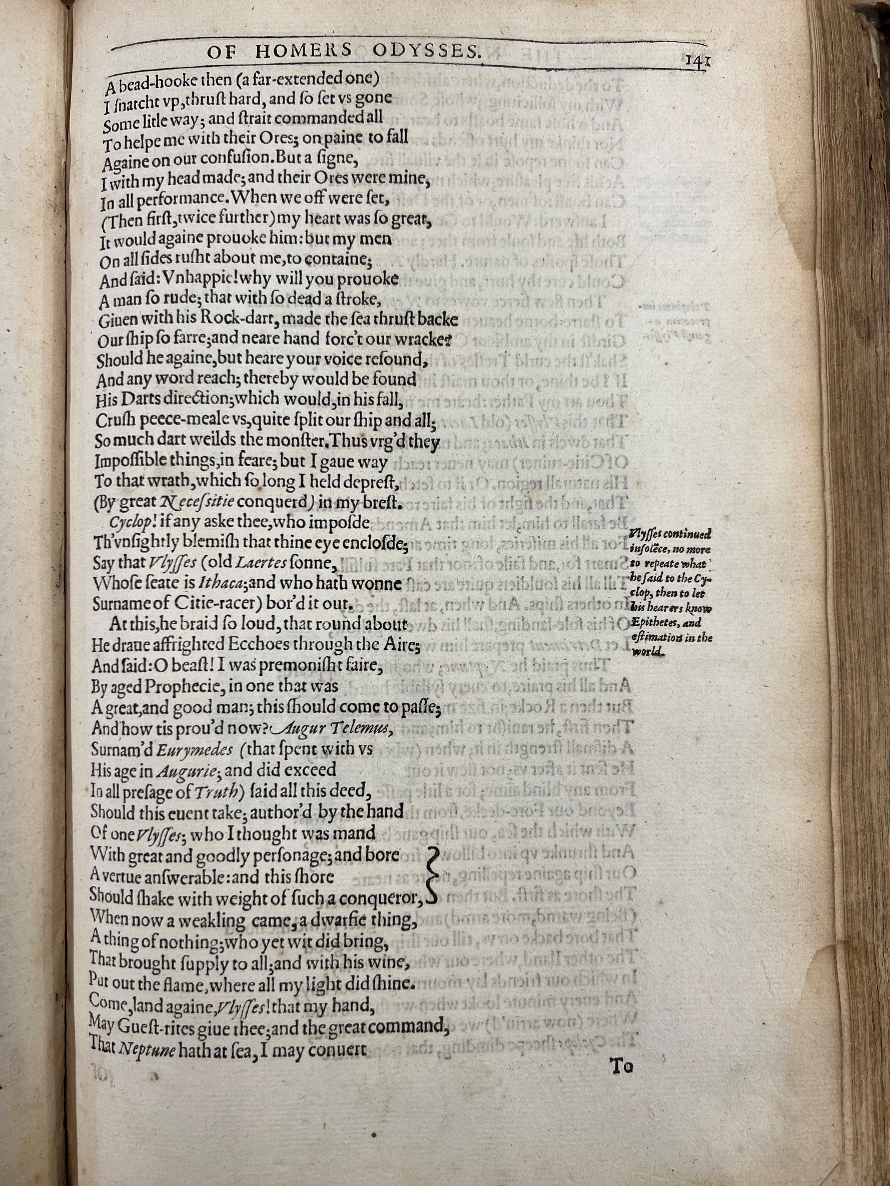 Homer continues the story of Troy in The Odyssey, including the death of Achilles, fall of Troy and the trials and tribulations of the main protagonist Odysseus’ attempt to travel home. Odysseys is portrayed as cunning, intelligent, brave and at times lucky during the Odyssey and this passage from his attempted escape from the cyclops typifies all of these qualities in Odysseus.
