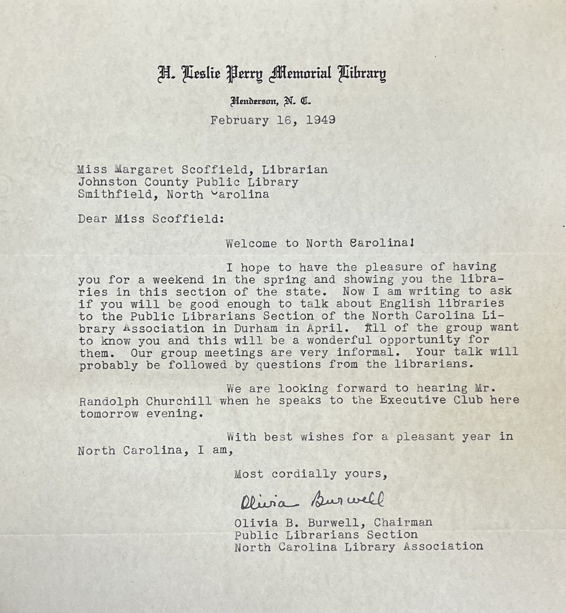 Correspondence from Schoffield’s time in North Carolina reveals she was much in demand as a speaker to local groups, all wanting to hear about her experiences in Aireborough and how she was finding the US.