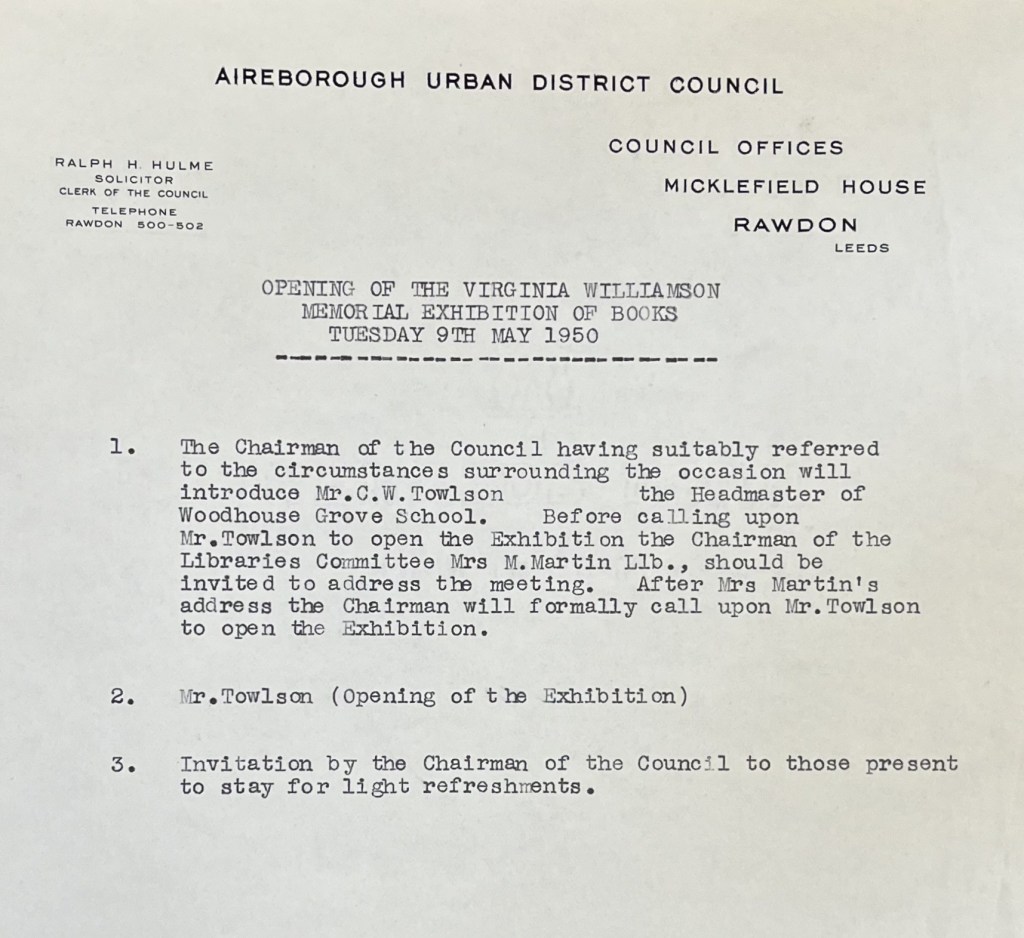 Leeds Libraries have a collection of items concerning this exchange, ranging from correspondence, newscuttings, library procedures, annual reports, pamphlets collected by Scoffield – plus details of the memorial fund set up in Williamson’s name. Please get in touch if you wish to view this unique collection.