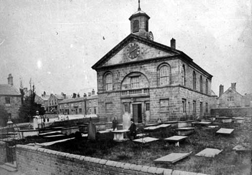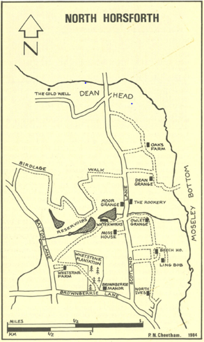 Special mention should be made of the Leodis website, from which several photos on this post have been taken. Leodis has an extensive collection of hundreds of interesting photographs of Horsforth in the past, including the one shown below of the Bell Chapel on the Green. A chapel existed on this site from the sixteenth century, but the one shown in the photograph was dated from around 1757. As the town grew it became far too small to cope with the demands of its parishioners and services were transferred to the new and much larger St Margaret’s church in 1883. The Bell Chapel was finally demolished in 1885-6, but one of the clock stone faces remains in the garden of rest (see Horsforth History Guide Number 5 The Green L HOR 942
