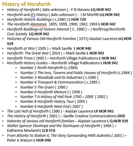 The History of Horsforth section of the Guide lists a number of books and publications that reflect the rich and varied history of the town and also reveal some of those interesting facts, events and stories that have helped shape Horsforth’s unique history.