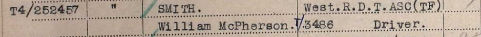 Which also contained a gem of information, that drivers of horse drawn transport had their service numbers prefixed by a T.  This allowed me to find this medal card, for William M Smith.