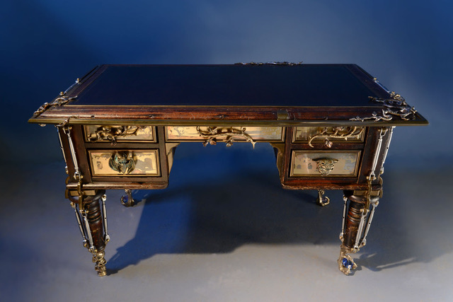 It is miraculous that the battered and despised carcass has since been creatively transformed by Mark Brazier-Jones into a breathtaking mythic object. Bronze and burnished steel embrace and envelop the carcass, honouring it as a reliquary. Unsurprisingly, Mark Brazier-Jones could not part with it. Those men of the theatre, JSR and Stoker would surely adore the desk in all its new splendid mystery.