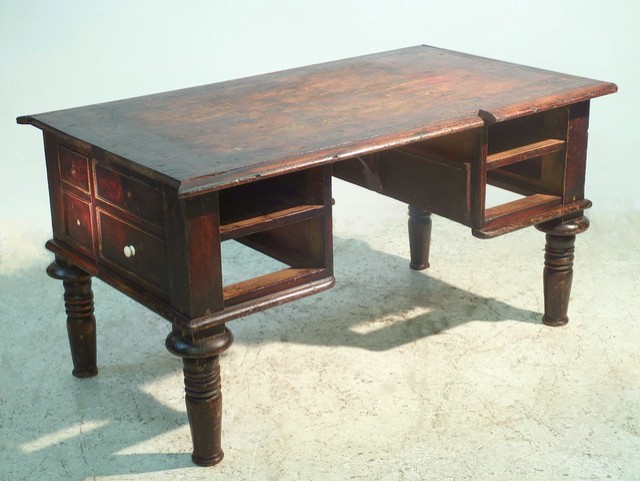 Whatever JSR’s opinion of the desk, he had kept it to himself. It was not popular with the family. It was dismissed, presumably by Elaine or Guy, as a ‘huge heavy, ugly thing, with thick bulbous legs.’ There were battered white pot knobs and a dummy drawer concealing a fifth drawer, ‘This abominable piece of furniture contains no more mystery than that.’ [14]