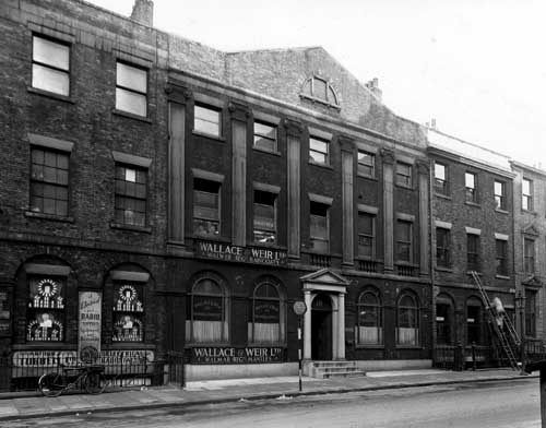 16th February 1949. Numbers 17 to 19 on the north-east side of Park Place. From left to right are; number 19, Arthur F. Tobbel, electrical and radio; number 18, Wallace & Weir Ltd, mantle makers; number 17, J. Beaumont (Leeds) Ltd, warehouseman. On the left is a bicycle, to the right is a man climbing a ladder. A ‘No Waiting’ sign is central. (c) Leeds Libraries, http://www.leodis.net