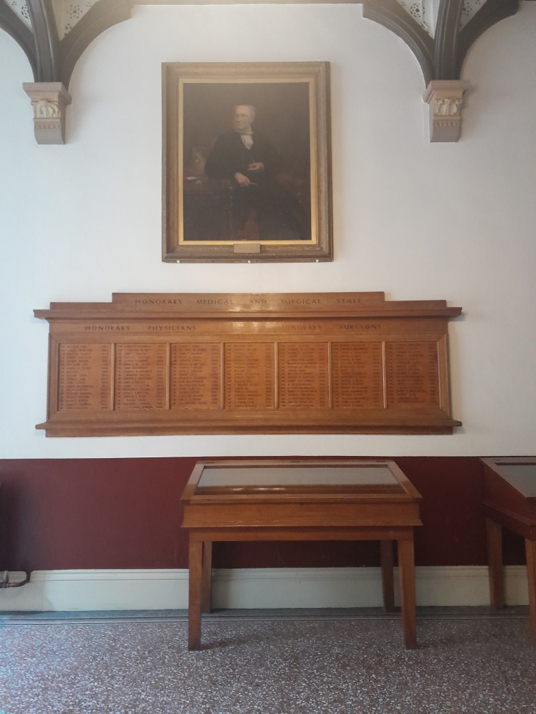 According to Spence, Samuel Smith was one of our eminent men (1).  Born in Leeds in 1790 as the son of a banker, Samuel was destined for a medical career.  In March 1815, he married Amelia Pyemount in Pontefract.  They were married by licence with the consent of her parents as Amelia was 20.  Their eldest son, George was born in October 1816.  One of the founders and a sometime president of the Leeds School of Medicine, in 1819, Samuel became surgeon at the LGI, holding the post for 45 years until 1864.  When he retired he took the role of consulting surgeon.  A keen fisherman and musician his portrait was commissioned for the committee room at the LGI as well as a bust of him.  The portrait can be found near the entrance of the post-graduate centre at the LGI today, above a list of honoured physicians and surgeons that bears his name.