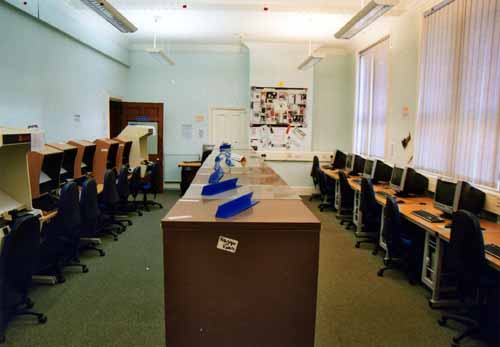 30th April 2007. View of the microfilm / computer room on the second floor of the Central Library. Cabinets storing newspapers on microfilm are seen in the centre, with microfilm readers on the left and computers on the right. This room was previously just a microfilm room until the reorganisation of spring 2007 when it also became an IT suite for the second floor. (c) Leeds Libraries, http://www.leodis.net