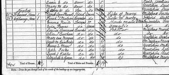 Agnes Stewart in the 1881 census, she is living at St Saviour’s Orphanage home. Below her you can see some of the young girls under her care.