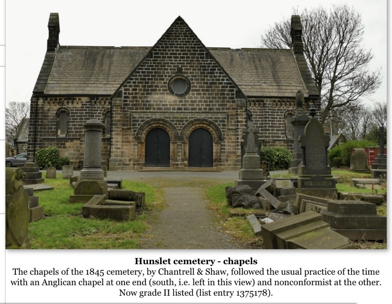 Information following from Historic England as Hunslet Old Cemetery is Grade II Listed (Image from Geograph Britain and Ireland – available for reuse under relevant licence)
