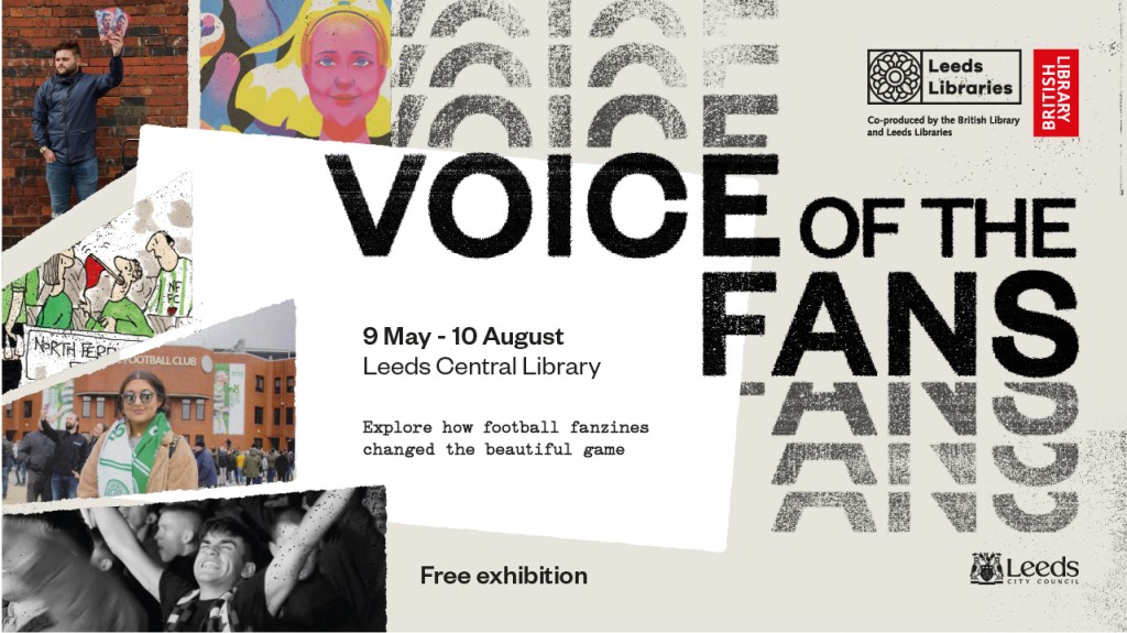 Leeds Libraries and the British Library are delighted to welcome the opening today (Friday May 9) of their co-production Voice of The Fans – a free exhibition exploring the past, present, and future of football fanzine culture.