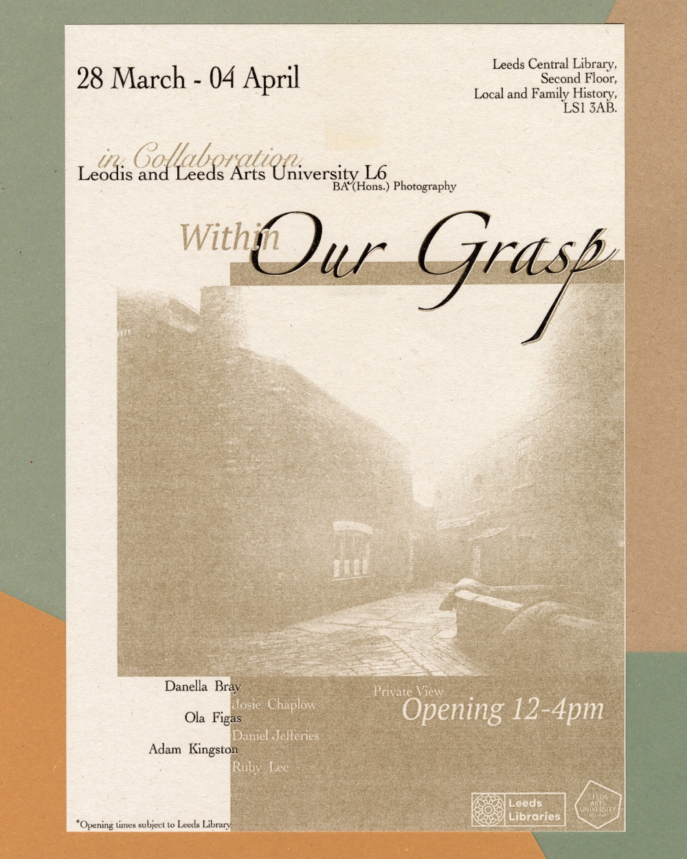 Daniel also designed a poster to publicise the exhibition and adopted an aesthetic that we felt suited the premise of the show, as well as the role of the Leodis archive as a civic and historical resource. This was printed on various hues of sugar paper using the Risograph printer at the university.