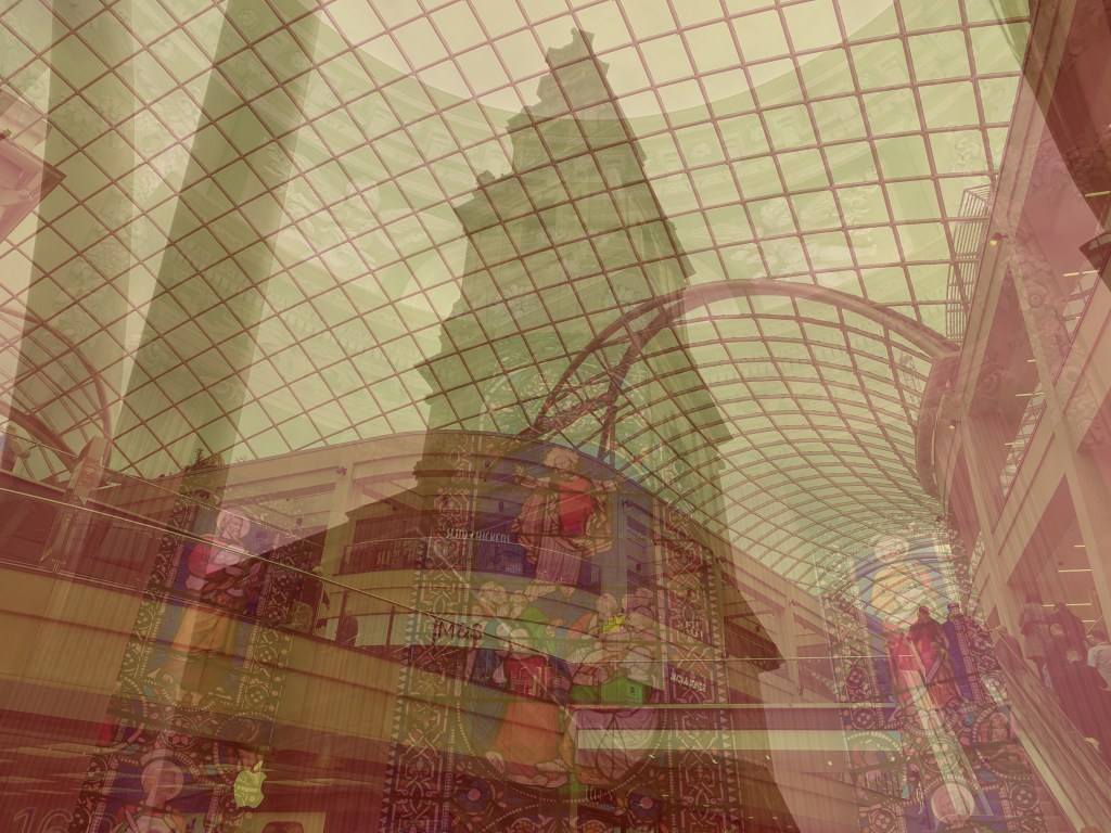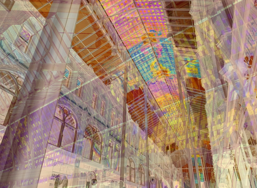 Leeds varies with the beautiful and powerful relationship between the old and the modern buildings; Ola shows through this dynamic with collaged images taken, highlighting the bond of old and new. Using Trinity Leeds and Victoria Quarter as the primary muse and example, the historical buildings sit perfectly next to the new buildings and constructions, rather than erased, it makes the buildings stronger and prominently proud of Leeds’s history. Ola has taken as well the inspirations from her father’s images of Leeds in the 2000s, showing how Leeds has grown fast over the years.
